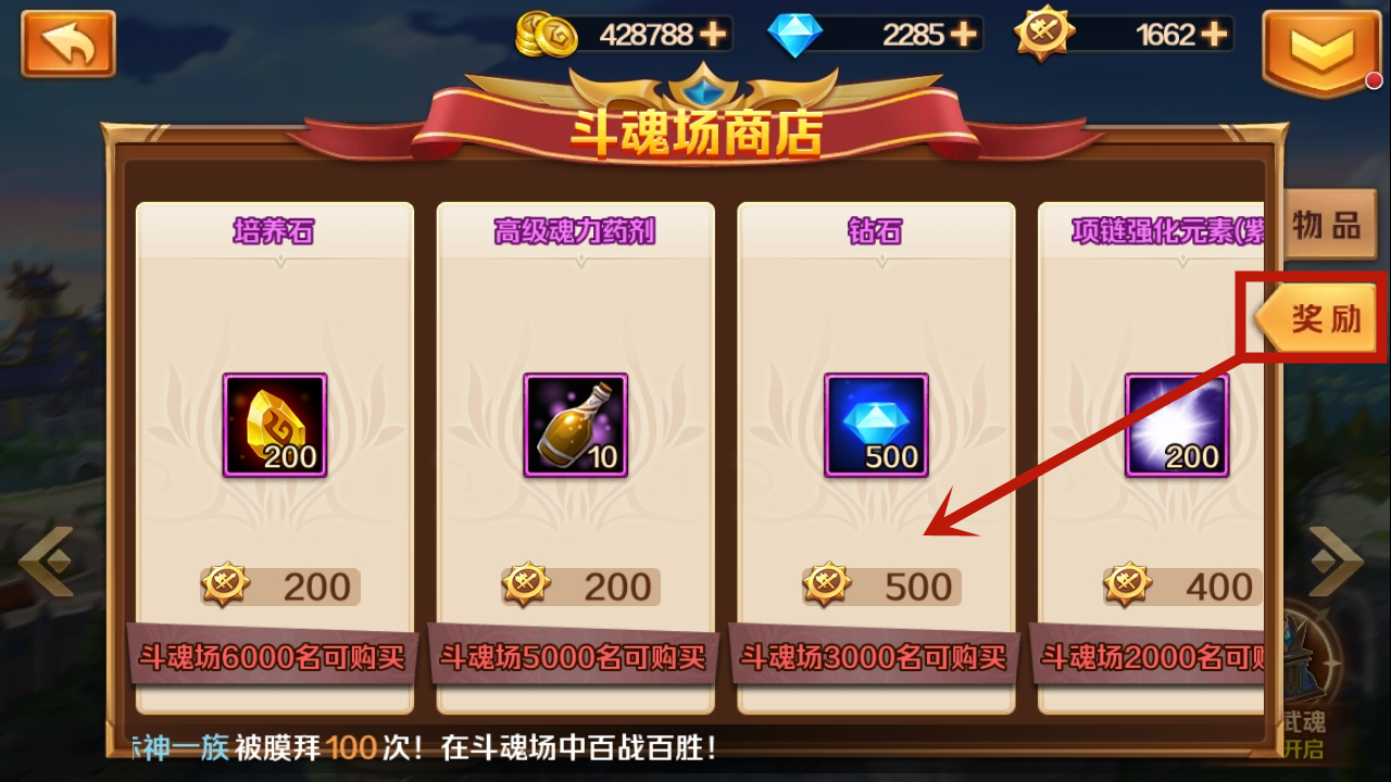 其次,斗魂场竞技是获取钻石的又一重要途径。就像图中展示的那样,游戏会依据玩家当前的排名发放相应的钻石奖励。通常情况下,排名进步越大,能拿到的钻石奖励也就越多。比如图里显示,排名进步近2000名就能获得300多钻石。对于新手而言,从初次参与竞技到后期稳定下来,大概能累积获得3000到4000钻石。不过要注意的是,排名进步并非越高越好,超过一定幅度后钻石奖励不会再增加,所以建议每次进步1000名以上就足够了。另外,从图二还能看到,在斗魂场商店中,我们可以用500斗魂币兑换500钻石,虽然数量不算多,但兑换难度很低,推荐大家尝试。