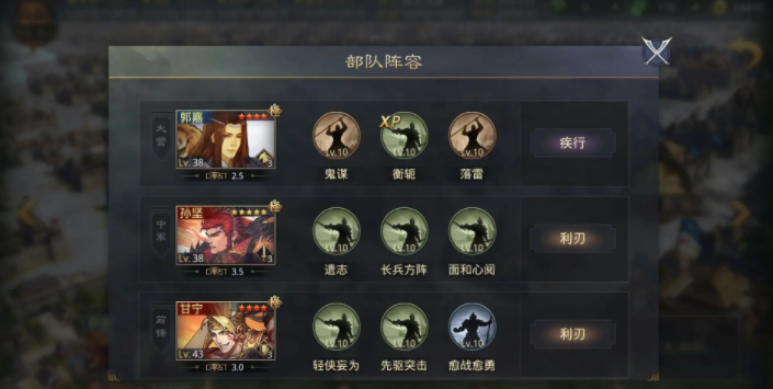 最后要提到的是孙坚、甘宁搭配郭嘉的组合,这套阵容具备万箭齐发、破敌深入的强势能力。不过它的操作性要求极高,一旦玩家能熟练驾驭,碰到对手基本就能实现秒杀;但遗憾的是,多数玩家难以发挥出这套阵容的真正实力,还需要通过反复尝试和练习才能掌握精髓。