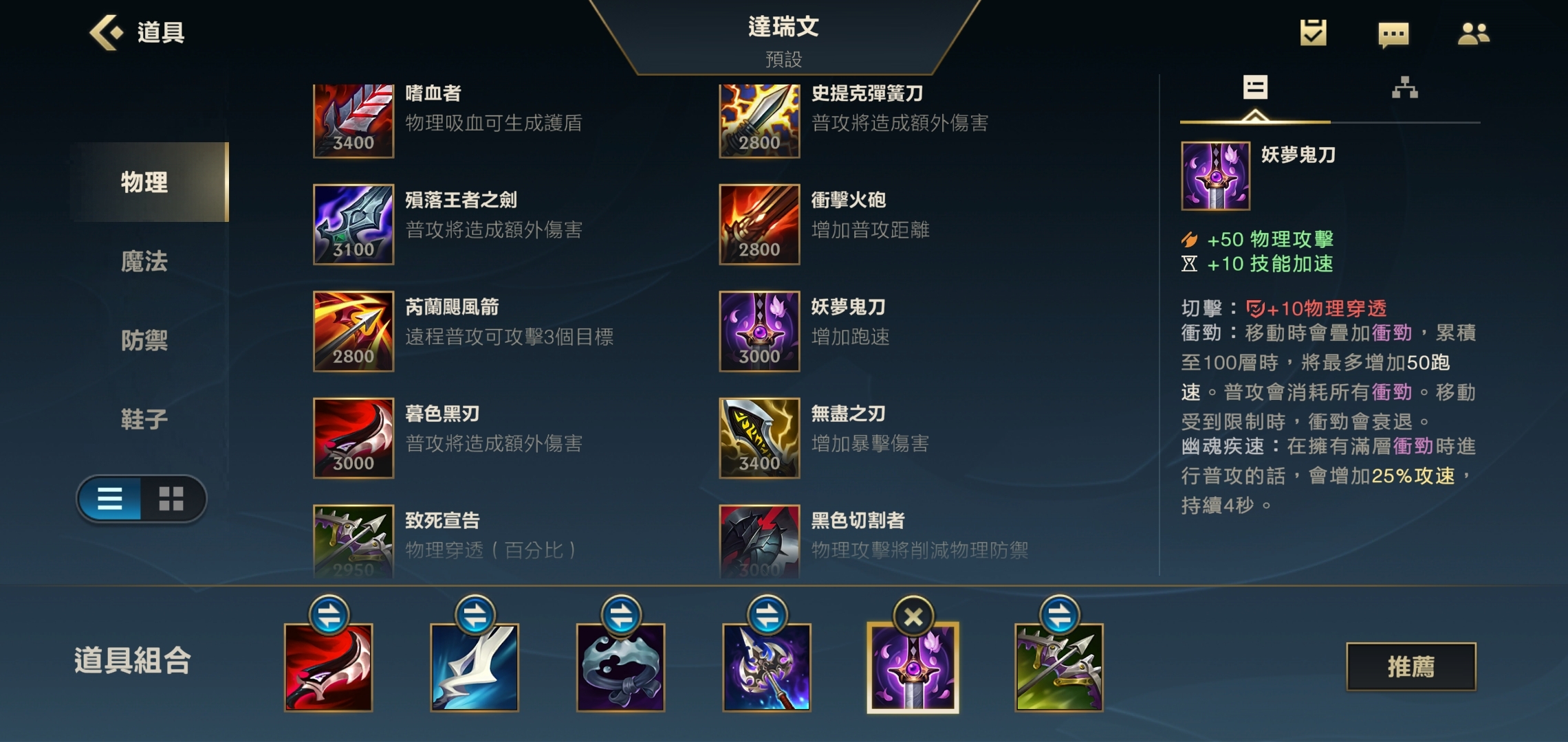 第五件装备我们选择出幽梦,这件装备不仅能提升自身的伤害,还可以借助被动效果来增加移动速度。