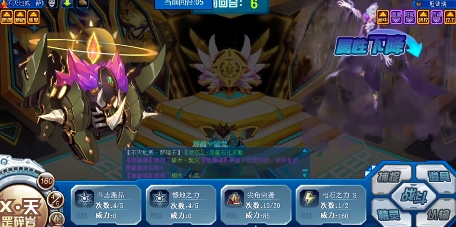当释放第五技能X·天罡碎岩时,它必然命中目标,并且会清除对手身上所有的能力提升效果;若成功命中,还能为使用者恢复全部生命值。此外,若使用者的生命值高于对手,每回合结束时都会削减对手最大生命值的三分之一;若生命值低于对手,则该技能造成的伤害会提升50%。