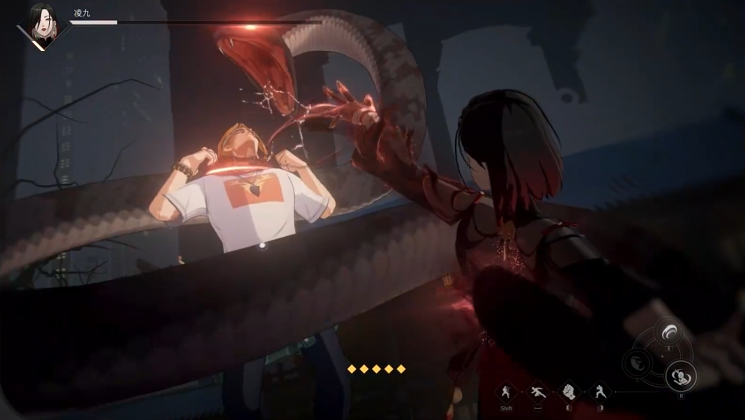 当最低生命值高于20%时,长按此技能攒炁不会消耗血量;若炁已充盈,短按则触发“罪龙却鳞”,将手中的扇子掷向对手,命中后会召唤蛇仙真身啃咬敌人,造成重创。该绝技的伤害虽比其他角色略低,但能恢复一定生命值,且使用后炁会快速充满,不过需等待一段时间才能再次释放。这位异人具备出色的突进与牵制能力,可灵活切换技能形态,最大限度地扬长避短,从而掌控战斗局面。