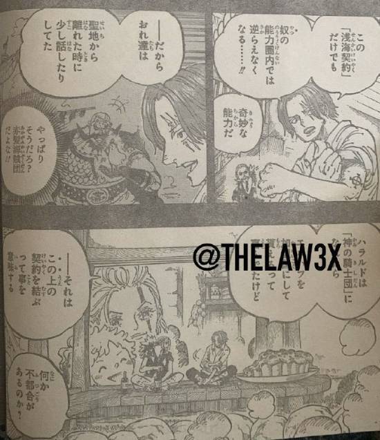 香克斯:“我与哈拉尔德曾在圣地,和那个被称为‘御大’的存在缔结了‘浅海誓约’。可哪怕只是这样一份誓约,只要我还处于他们能力所及的范围之内……我就根本没有办法违背他们的指令……!!”