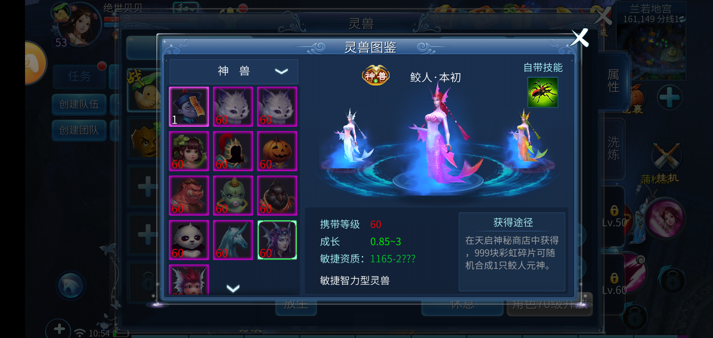 鲛人拥有千蛛万毒这一自带技能,该技能可在天启神秘商店获取,消耗999块彩虹碎片能随机合成一只鲛人元神。