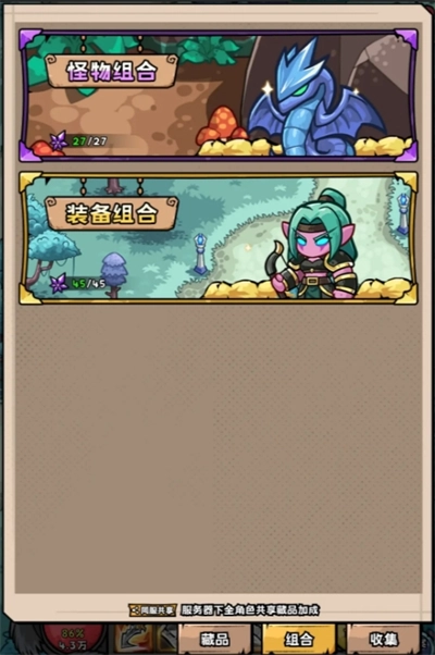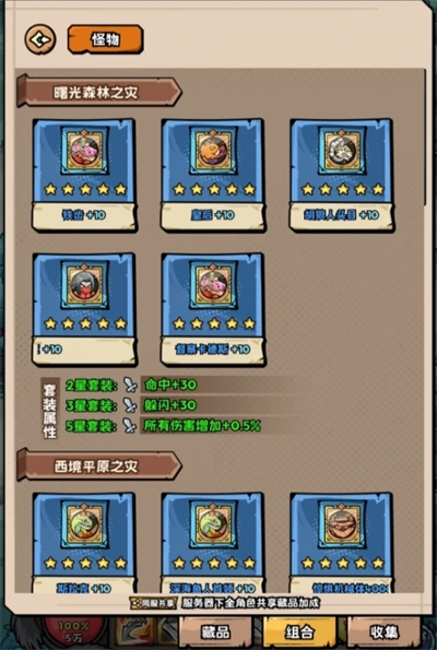 首先藏品组合分为怪物藏品组合以及装备藏品组合。