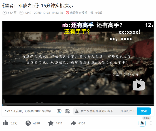 目前这段实机预告在B站的播放量已经达到58.4万,收获的点赞数也有3.2万。