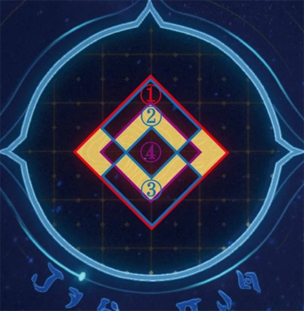 按顺序选择:首先是①中央大菱形,接着是②内部上方小菱形,然后是③内部下方小菱形,最后是④内部中间小菱形。