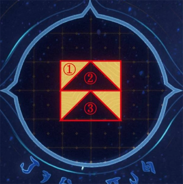 按顺序选择:①中央的大正方形 ②上方的三角形 ③下方的三角形