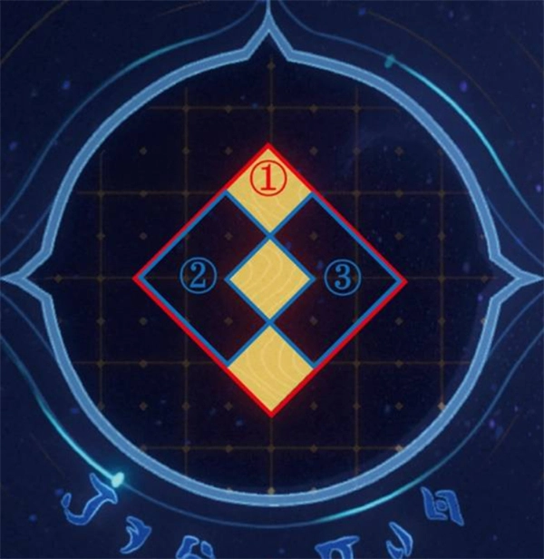 按顺序选择:首先是①中央大菱形,接着是②左侧小菱形,最后是③右侧小菱形。