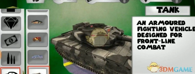 2. 点击车辆,接着在右侧向下滑动,便能看到坦克。