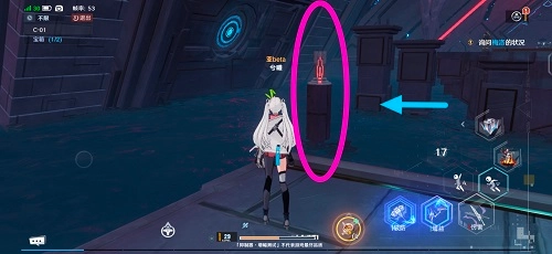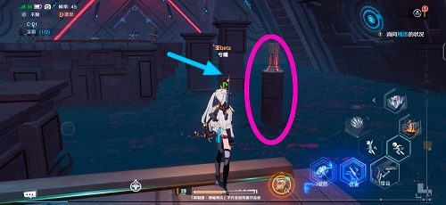 2、你会看到前方出现一根石柱。使用远程攻击方式,击打一下石柱,门就能打开。