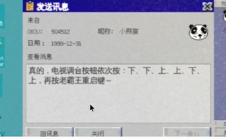 5、进入包机房,点击相关信息,获取到电视机的操作按钮顺序为下、下、上、上、下上,随后进行重启操作。