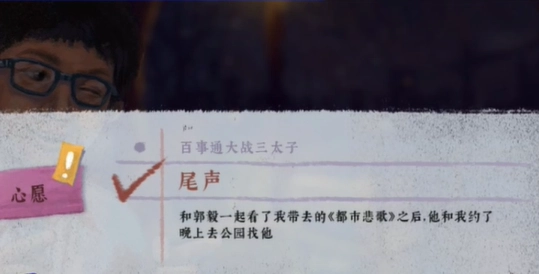 7、完成后续剧情之后,若选择把薯条给宋健妈妈,就能完成支线任务“最后的晚餐” 。
