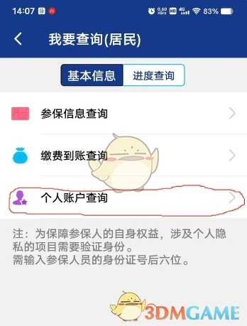 2. 进入之后,点击“个人账户查询”。