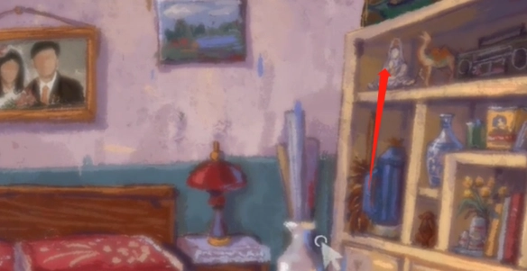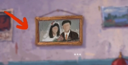 2. 点击左侧柜子获取干脆面,接着走进父母的卧室,点击墙上的结婚照。