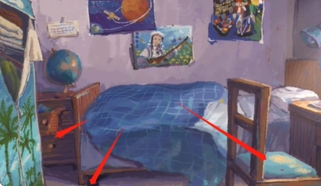 3、按顺序点击椅子坐垫、床下的黑袜子以及床头柜,这样就能完成任务。
