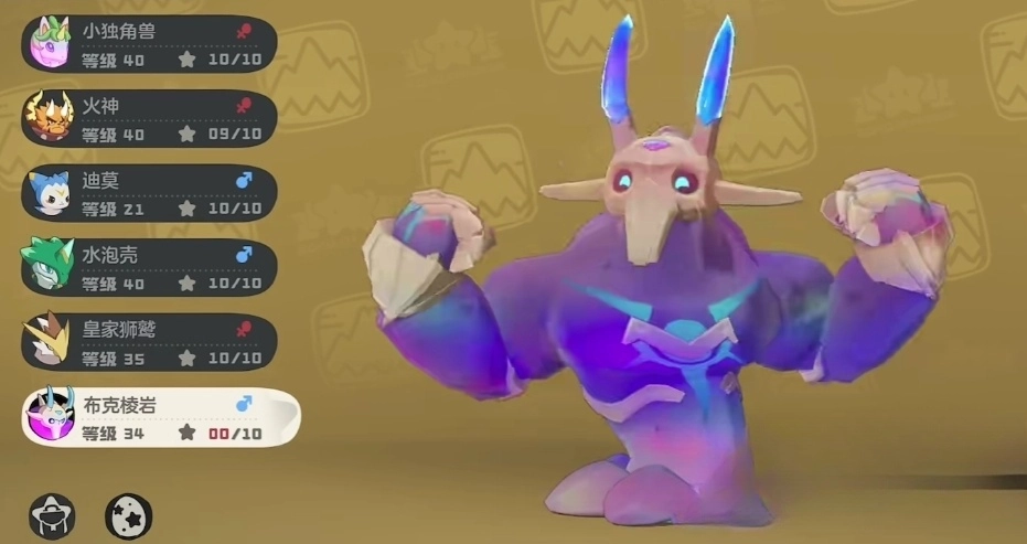 布克棱岩的外观特点同样吸睛,它那庞大的身形以及岩石构成部分,让它看上去极具威慑感。虽说整体给人感觉十分沉重,然而其主要重量都集中在头部与手上的岩石部位。这不仅契合它土属性的特质,还让它在战斗中显得愈发坚固,难以被撼动。