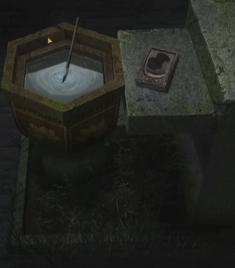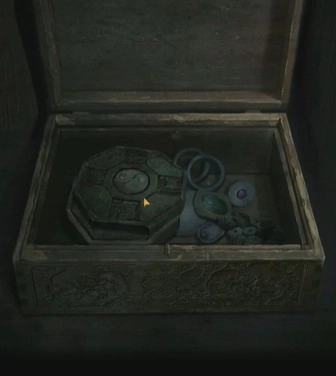 10、重新回到最初柜子上那个带有阴阳鱼的盒子前,把黑白珠子放入其中,随即得到一个罗盘。