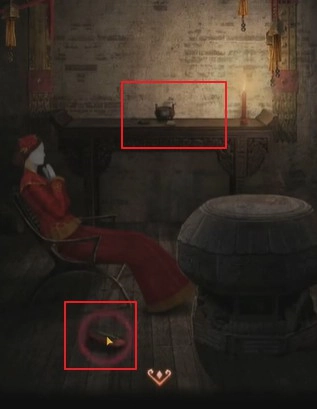 22、来到男主房间,点击图示位置的盒子,用发条钥匙开启,进行吹箫小游戏(此游戏可选择跳过)。