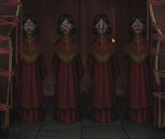 37、将佛像房间中,佛像坐下的线剪了,将木偶排成一二三四完成小游戏。