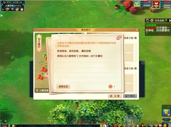 通过参与重阳节的各种精彩活动,大家可以获得驱邪细绢和山茱萸果,制作出精美的茱萸香囊。在活动期间,大家每天最多使用200个茱萸香囊,如果材料不够,还可以花费梦幻币在茱萸仙子处购买。在茱萸香囊内,装满了各种惊喜奖励。如果你也想在重阳节期间开启神秘的茱萸香囊,那就千万不要错过即将到来的丰富活动。