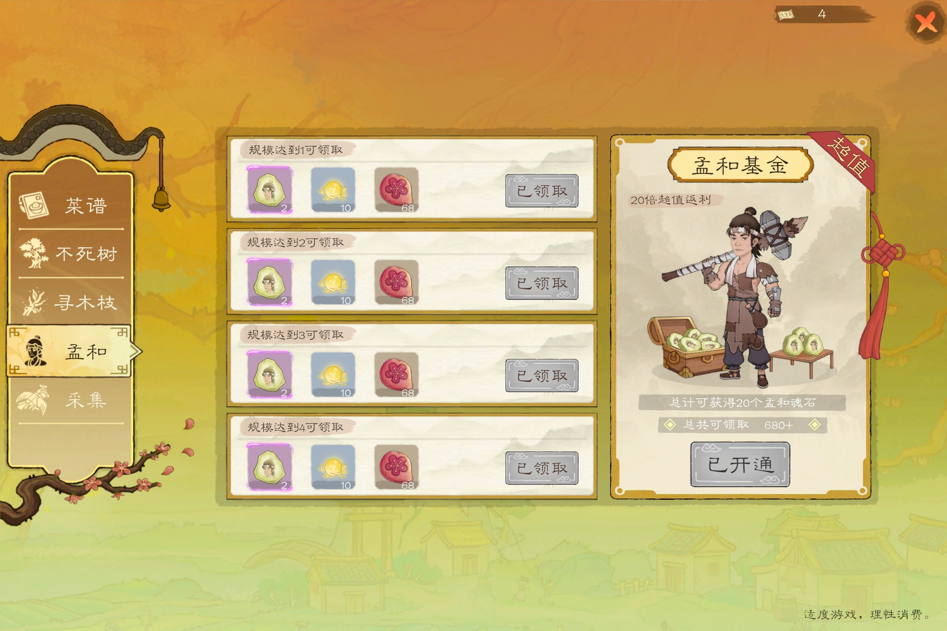 购买后,前期的随机兽潮将不再是难度,孟和单过