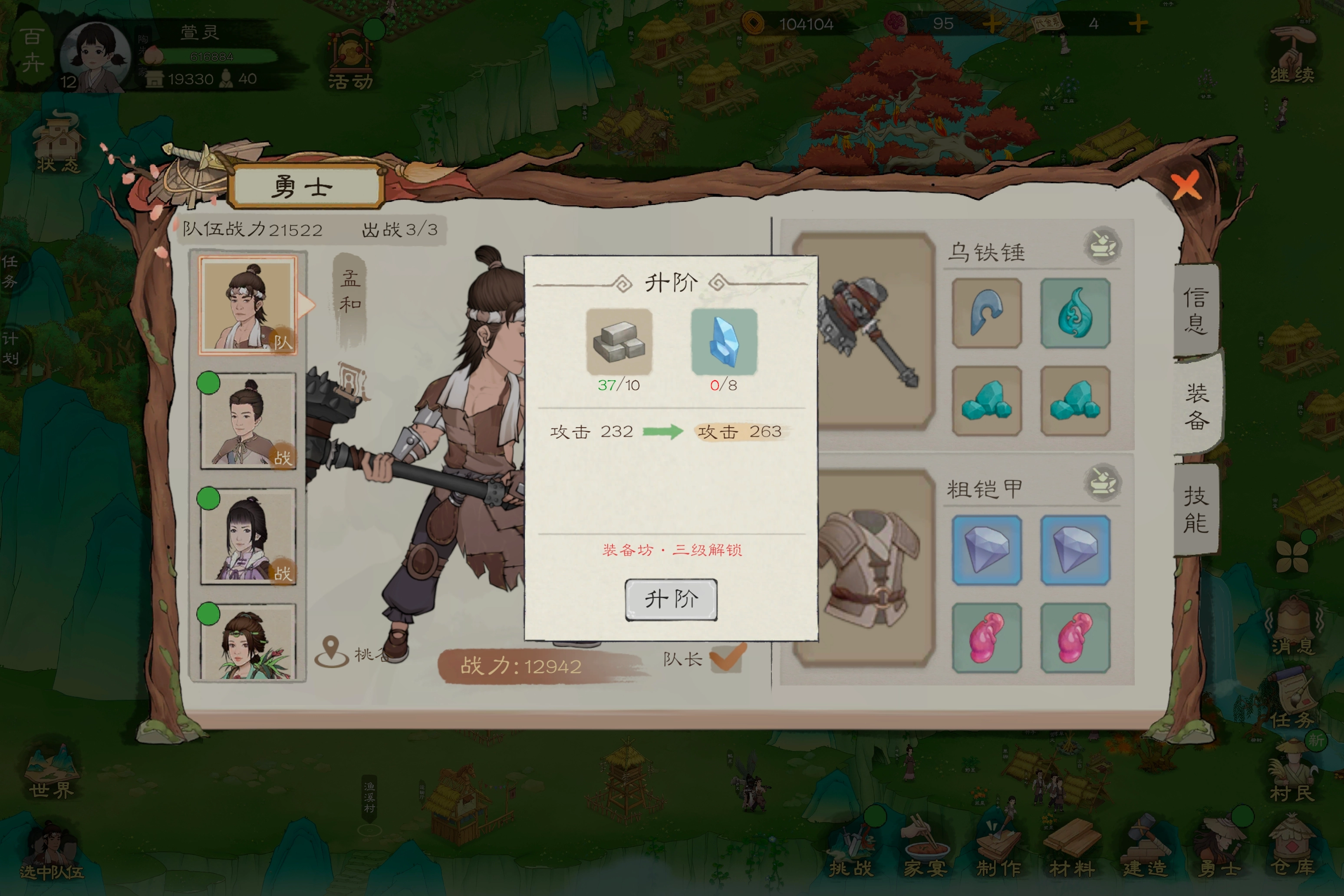 装备等级有上限,需要建造装备坊和升级装备坊来突破勇者的装备等级