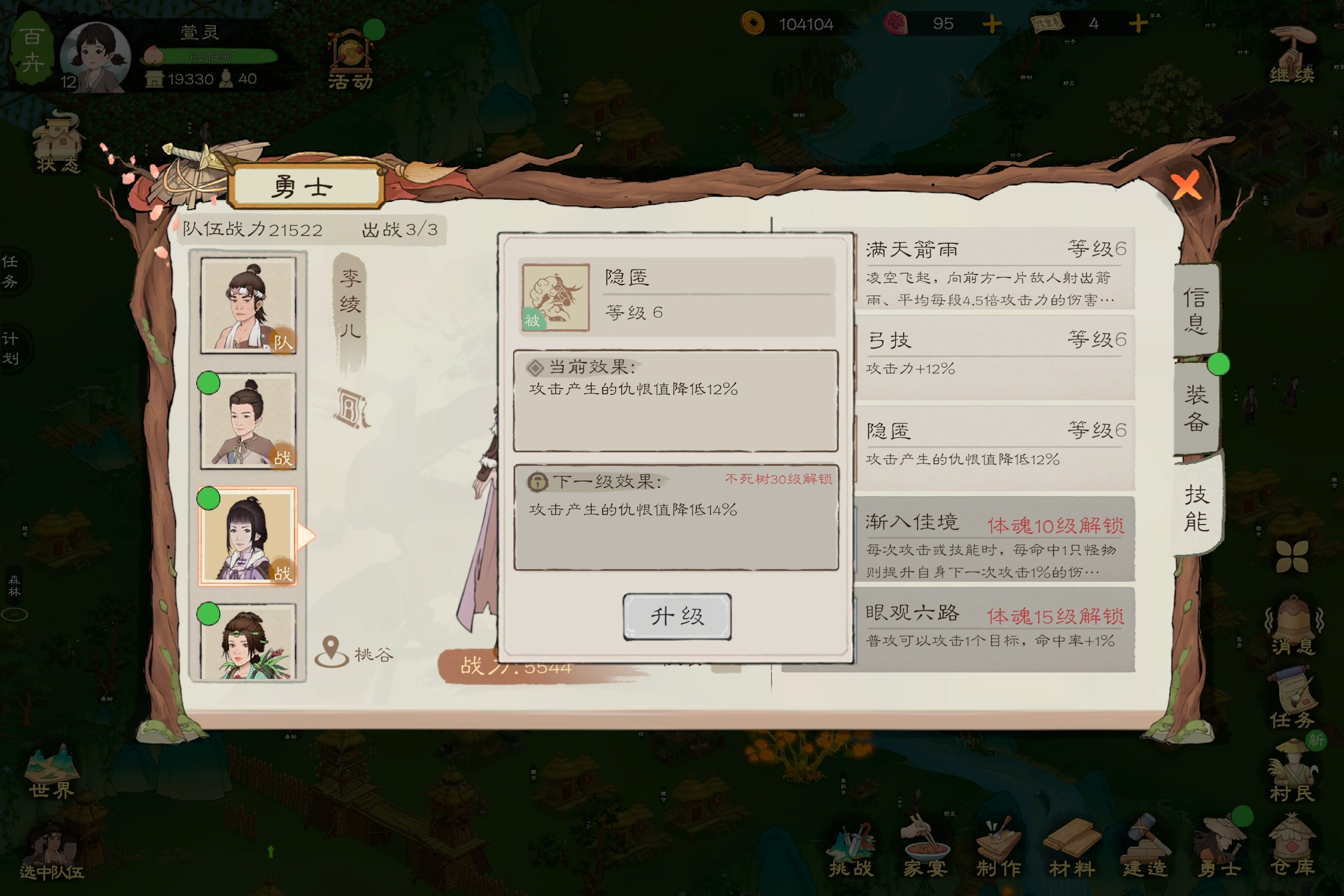 注意:勇者的主动和被动技能可通过提升不死树等级来升级,每提升五级不死树,勇者的主动和被动技能就能升级一级(不死树需每日施肥以实现升级)