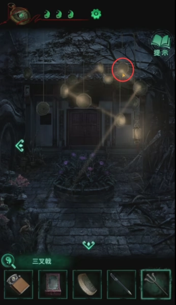 10、回到院子,用三叉戟触碰高处的亮点,此时需要进行解密。