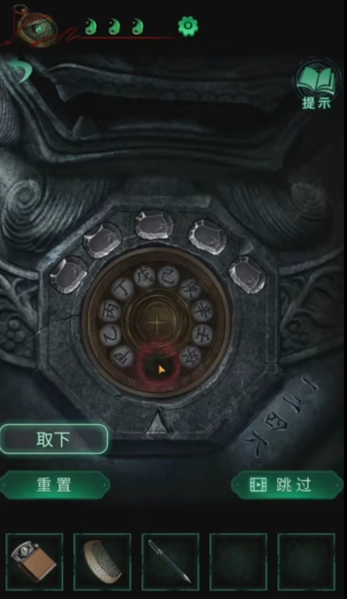 33、点击右侧狮子,将拨号盘放上去,按照的顺序拨号。