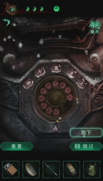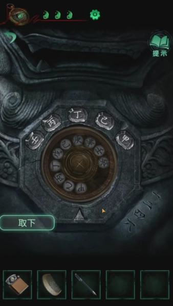 20、返回大门,点击左侧狮子,将拨号盘外壳放在上面。