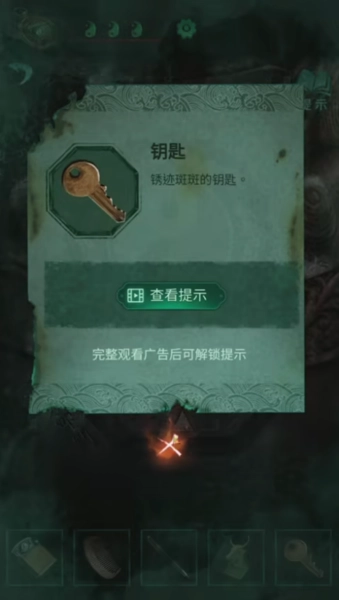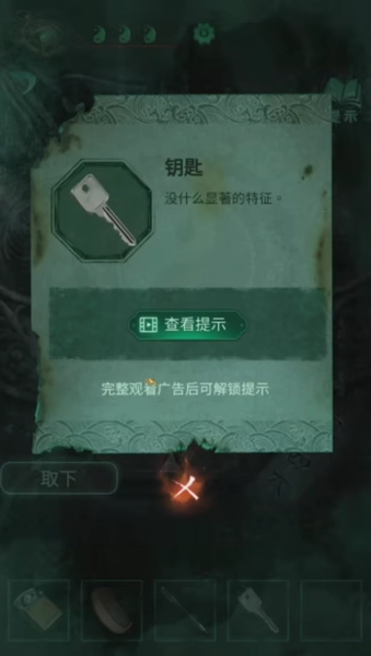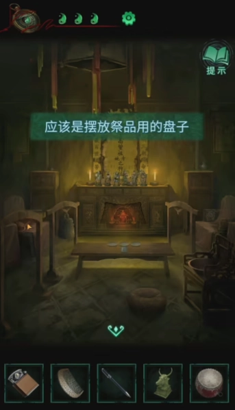 55、点击桌子中间,会出现一个空洞。获得桃木剑。