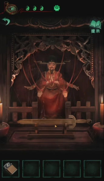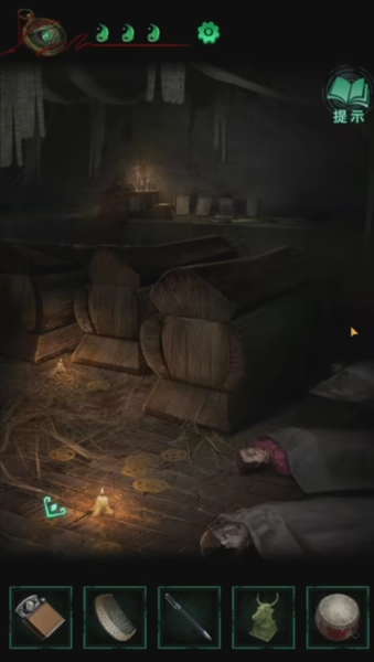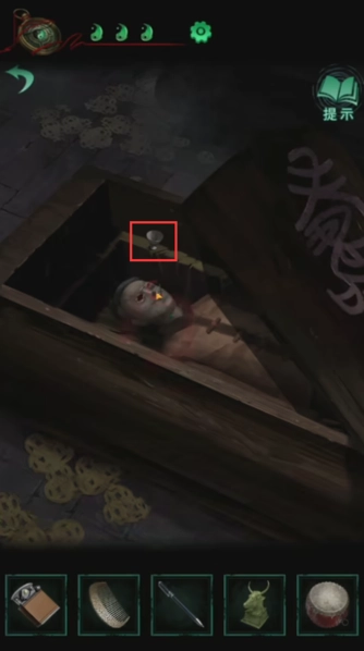 42、走进左侧院子的屋子里,依照顺序点击棺材。先点福两次,接着点禄一次,再点福一次,然后点寿一次,最后点禄一次。