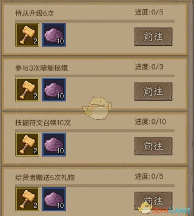 5、完成日常任务,每日可以获得8把遗物金锤,每天凌晨0点刷新,三天一共可获得24把遗物金锤。
