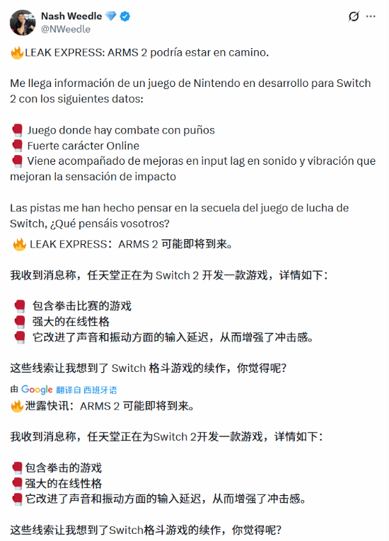 Switch 2正式发售后迅速走红市场,不过玩家们对其第一方大作后续阵容的扩充仍抱有很高期待。最近,多次精准透露任天堂消息的知名内部人士Nash Weedle发布了一条“泄密速报”,称任天堂极具创意的格斗IP《ARMS》的正统续作正在开发中。 根据Nash ...