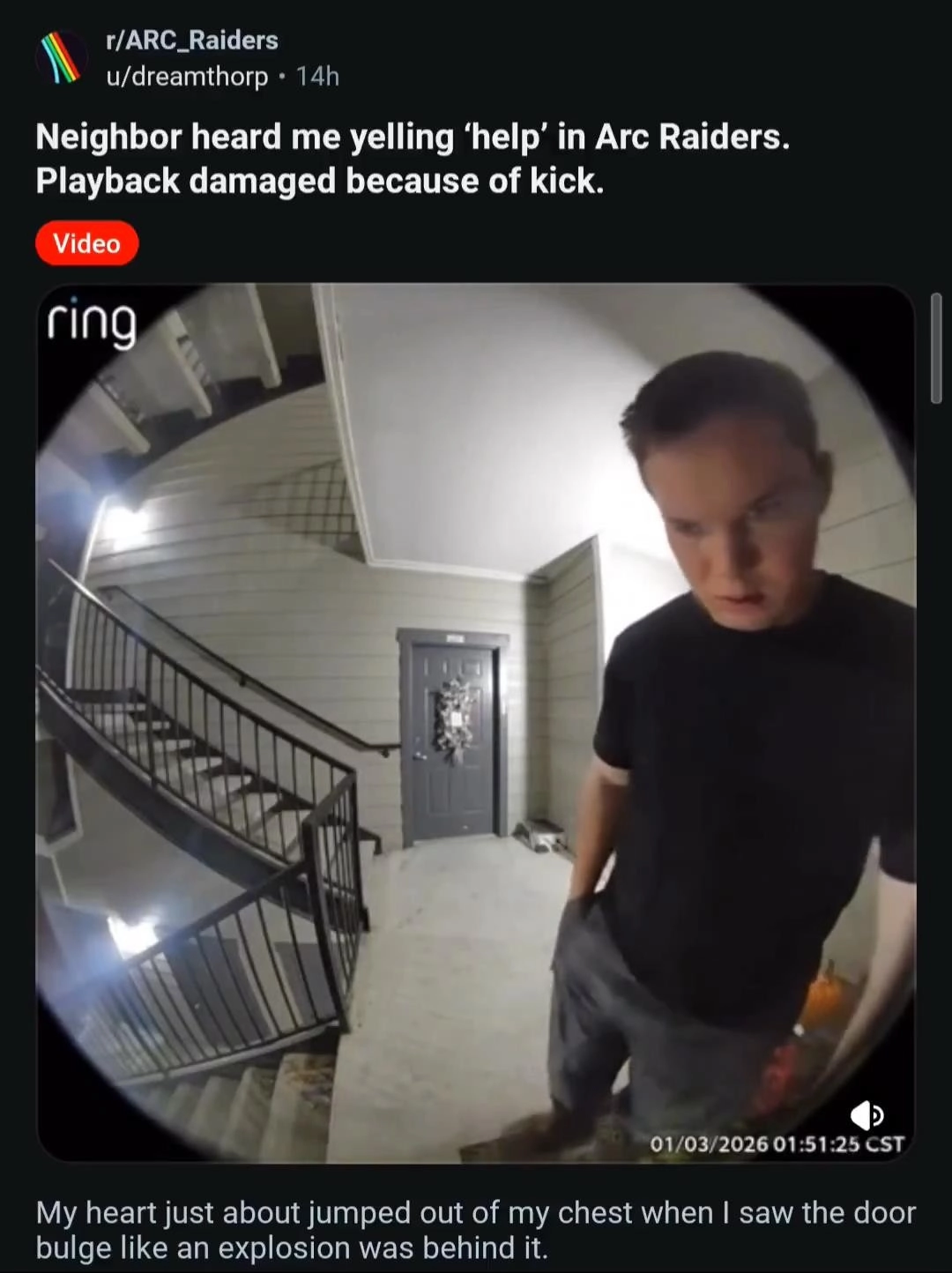近日,《ARC Raiders》官方分享了一则趣事,引发网友热议:有位玩家在游玩《ARC Raiders》时过于投入,不断大喊“救命”,而这呼喊声恰好被邻居听到了。 现场视频: 不明真相的邻居误以为隔壁发生了恶性案件,他先是用力敲门,可玩家并未听见。邻居随...