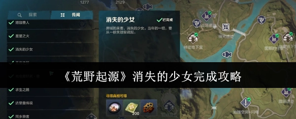 荒野起源里“消失的少女”任务要怎么完成呢?“消失的少女”属于支线任务,好多玩家都绞尽脑汁,却始终未能找到完成方法。今天就给大家详细讲讲荒野起源中“消失的少女”该如何完成。一起来看看具体需要怎么做,有哪些具体操作步骤吧。 《荒野起源》消失的少女...