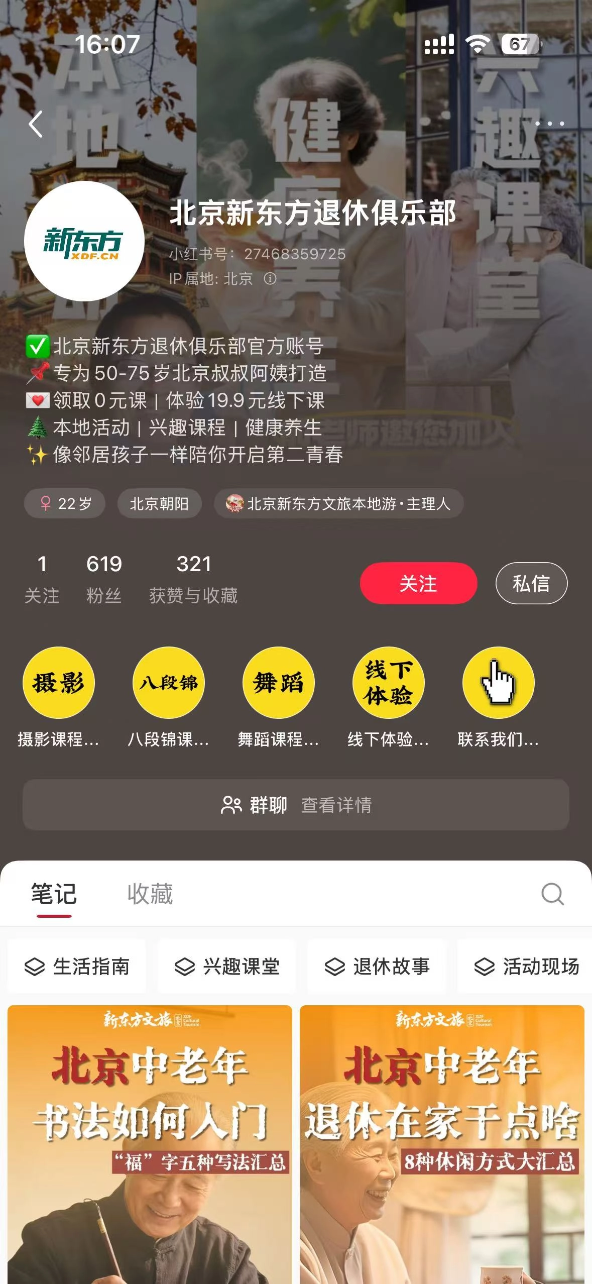 1月21日消息,近期在小红书与抖音平台上出现了一个名为“北京新东方退休俱乐部”的账号,该账号通过多个社交平台发布招募信息,面向北京地区50至75岁的退休叔叔阿姨发出加入邀请。 小雷点进去一看,居然是俞敏洪团队专门给退休人士办的“快乐老家”! 图源:小红...