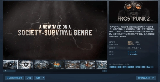 近日,11 bit studios开发的生存策略游戏《冰汽时代2》在Steam平台迎来历史最低价,仅售89.4元,该折扣活动将于2月2日截止。 Steam商店地址(点击上方卡片,可享游民APP专属优惠)>>> 游戏介绍: 《冰汽时代...