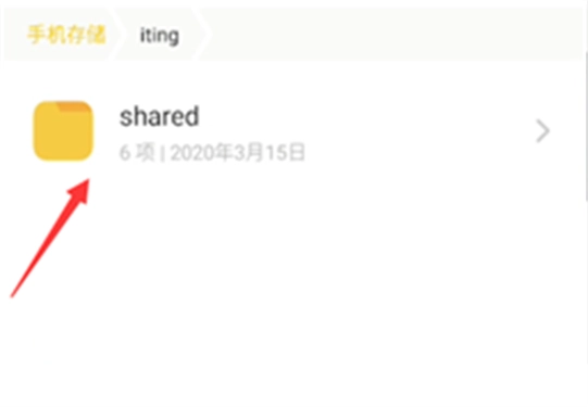 打开手机的文件管理应用,进入手机存储页面,然后向下滑动屏幕,找到并找回iting文件夹。