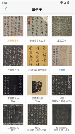 选择一个字帖点击进入,比如“兰亭序”;