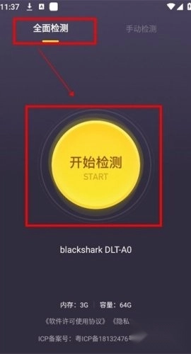 2、全面检测只需要点击屏幕中间的开始检测即可。