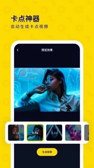 预设电影质感的精美滤镜和音乐转场,一键生成专属卡点视频。