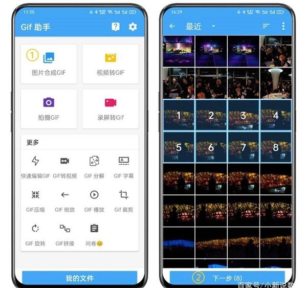 点击图片合成功能,接着挑选你想使用的图片(注意必须选择两张或两张以上图片哦),之后点击下一步。
