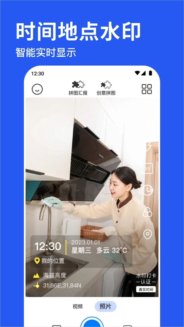 水印相机拍照神器是一款由合肥开发的优质实时地点水印相机应用。这款应用操作简单便捷,提供时间水印、地点水印、工程记录、考勤打卡等多种免费特色水印,能充分满足各类需求,欢迎有需要的朋友使用。