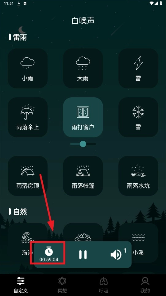 2、自定义混音:您能够自定义让自己感到舒心的白噪声,方法是将3种默认背景音频混合在一个白噪音里。