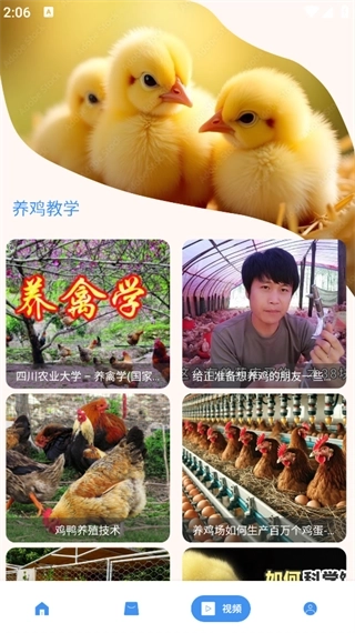 4.点击页面下方的‘视频’,即可看到养鸡教学。