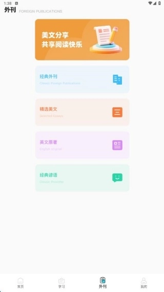 4、外刊板块整合了涵盖多元主题的英语外刊资源,可供用户免费阅读。
