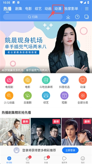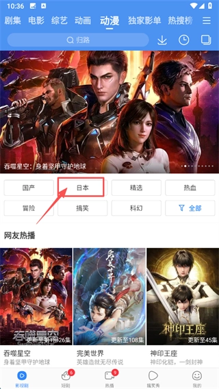 打开视频类应用后,点击顶部的动漫分类标签,即可进入动漫专属页面。