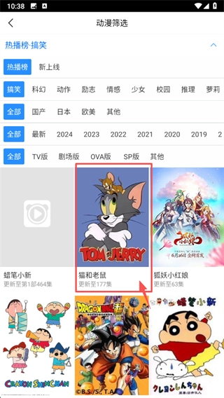 在筛选后的动漫列表中,点击“猫和老鼠”这一条目,即可进入该动漫的详情页面。