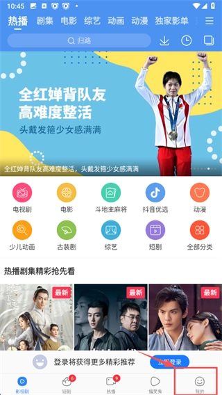 打开视频类应用后,点击底部的“我的”选项,即可进入个人中心页面。